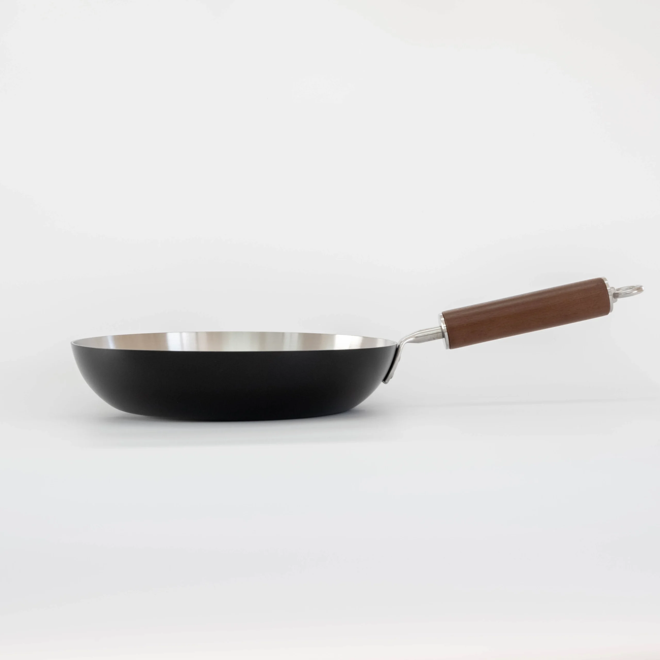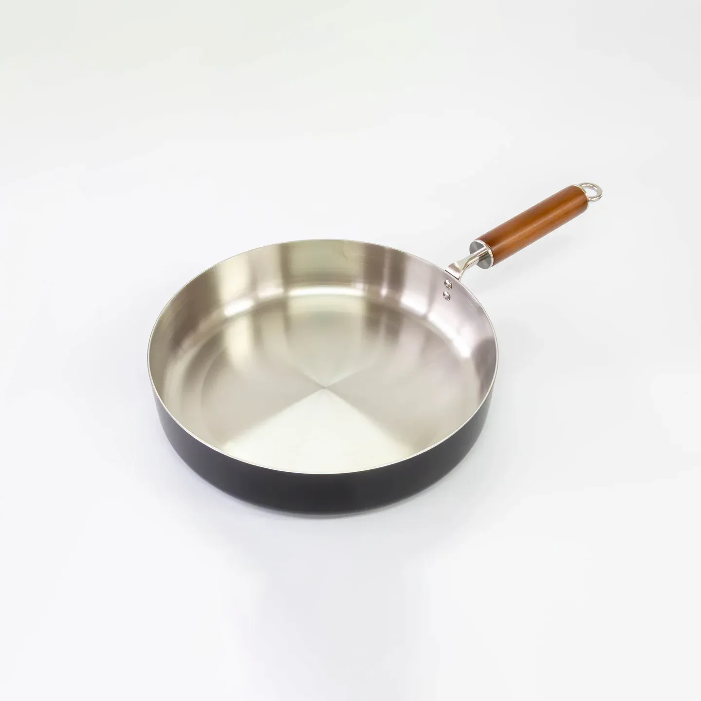 ステンレスとアルミなどを重ねた3層構造で作られたフライパン。熱の伝導が良く、側面・底のどちらからも火が伝わりやすいため、焼きムラが起こりにくい仕様。ステンレス特有の丈夫さと、見た目の光沢感がキッチンを明るくします。金属ツールにも比較的耐性があり、メンテナンス次第で長く使えるモデル。 -